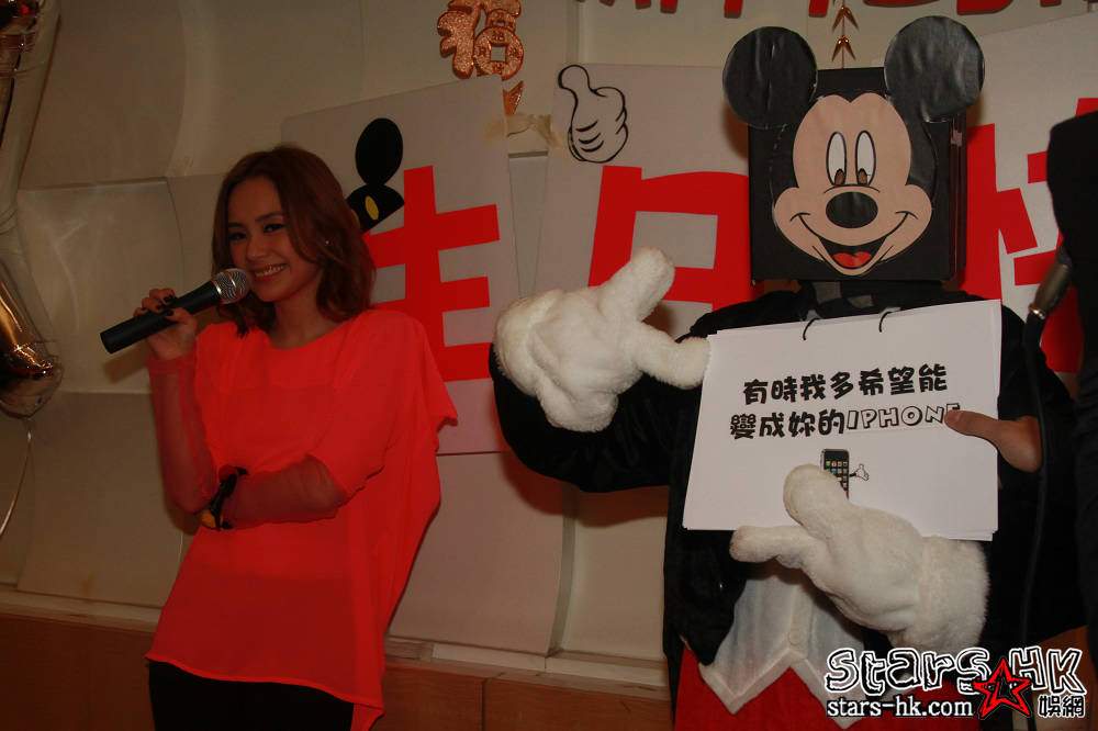 阿Sa 表示向迪士尼借米奇老鼠服裝卻不果,幸好得到熱心的粉絲為她找到合身的,而人物的頭只好用紙合代替。 由於阿Sa 曾向阿嬌說要到內地工作而未能出席派對,令阿嬌意想不到米奇老鼠就是她,而調皮的阿Sa 主要是給老拍檔一個驚喜而已。派對完畢後,阿嬌感謝所有歌迷的支持,表示會加倍努力來答謝大家,並祝歌迷新一年開開心心,身體健康,一同進步。