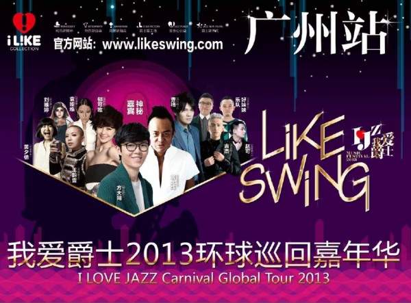 作為全球首個流行爵士的娛樂嘉年華,“LIKE SWING”我愛爵士2013環球巡回嘉年華堪稱本年度最值得期待的音樂盛會之一。嘉年華聯動廣州、深圳、香港、重慶四城展開,首站在中國流行音樂發源地廣州盛大啟動,鎖定聖誕新年檔,將從12月24日至28日,展開持續5天舉行爵士狂歡嘉年華演出。