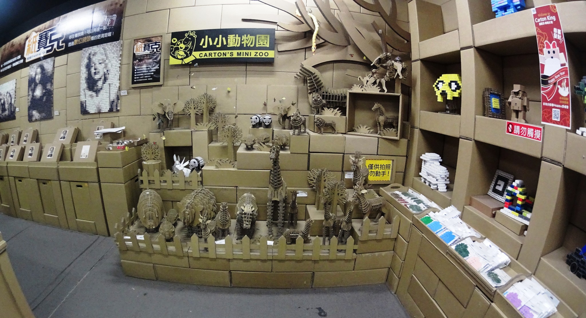 泡完溫泉,我們坐taxi(只能坐taxi)到紙箱王國 – 所有的裝飾、擺設都是紙箱做的,創意十足。它有幾個主題園區,例如動物園區,有長頸鹿、獅子等挺可愛的。