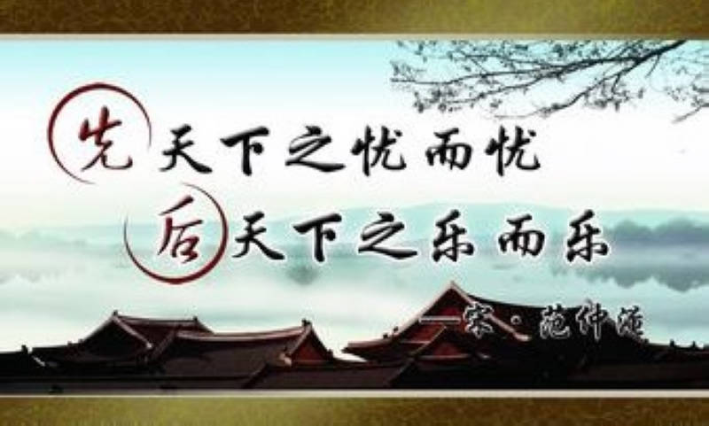 宋代詩人範仲淹的《岳陽樓記》:「古代的仁人志士不因外物好壞或自身得失而或喜或悲,總是先天下之憂而憂,後天下之樂而樂。」
