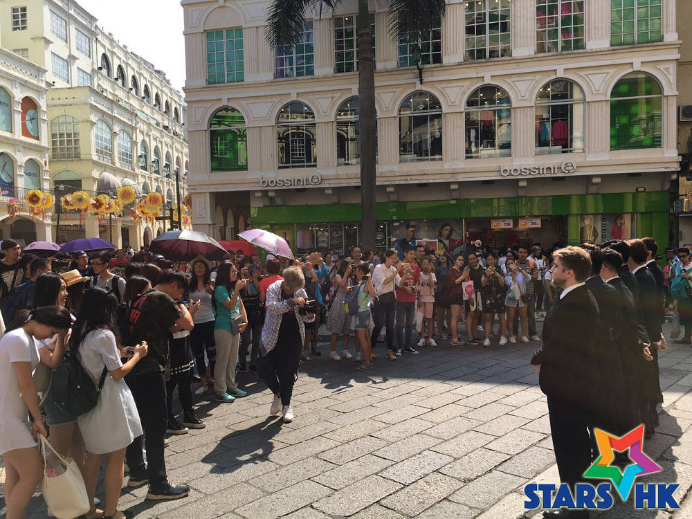 BIGBAG五子有型又有款,當日著起西裝,帶上墨鏡穿上長靴,帥氣十足,「軍人」的造型有板有眼。恰巧當日適逢假期,五子特意選擇世遺景點作Catwalk路線,目的讓更多的旅客及民眾接觸到本地原創品牌的作品,行程中有不少民眾爭相合照,現場吸納了大批粉絲,整個過程更引起在場超過數百遊客的轟動,圍觀拍照的更不計其數!五子更笑言當了一天的旅遊大使呢,不韓組合的魅力果然沒法擋!