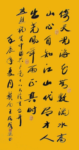 『倚天照海花無數,流水高山心自知』