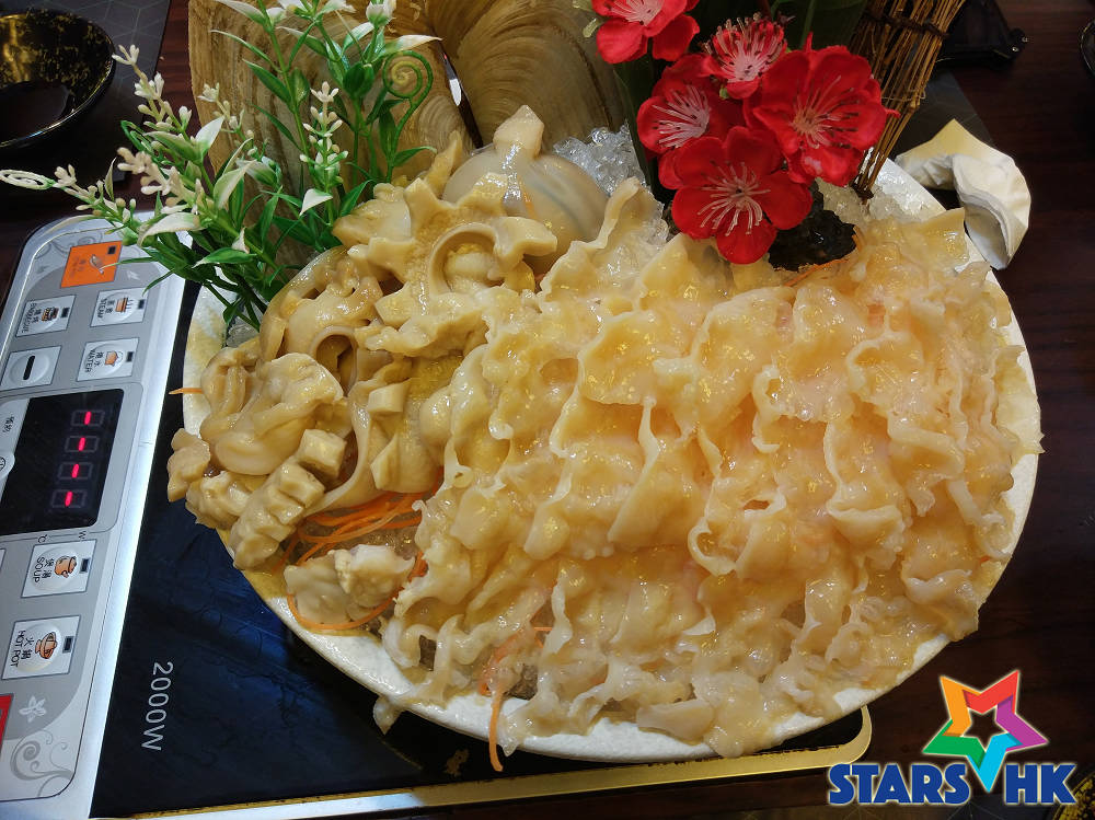 識飲識食,仲煮得一手好菜的劉婷婷Coka ,呢日就應老闆的邀請到店品嚐美食。而前菜當然是見證食材新鮮水準的刺身,我們點了象拔蚌刺身和花金古魚刺身,每盤刺身都佈置得非常精緻, 猶如一幅藝術畫,置於碎冰上的蚌片猶如層層波浪,薄得通透,入口柔中帶爽,爽滑中帶鮮,讓人欲仙欲死,極緻享受。