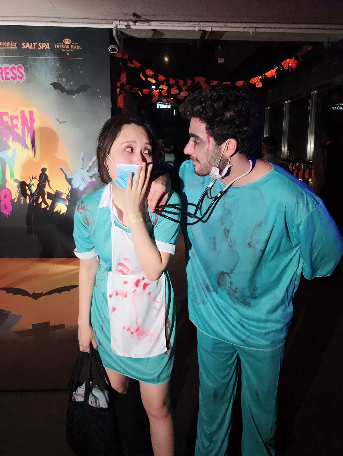回到活動的本身,事前有為變裝花了點小心思,最後是選了經典的恐怖護士,哈~