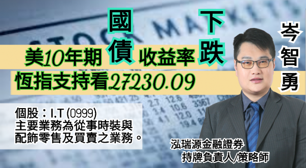 【UTO財經】岑智勇:美10年期國債收益率下跌 恆指支持看27230.09