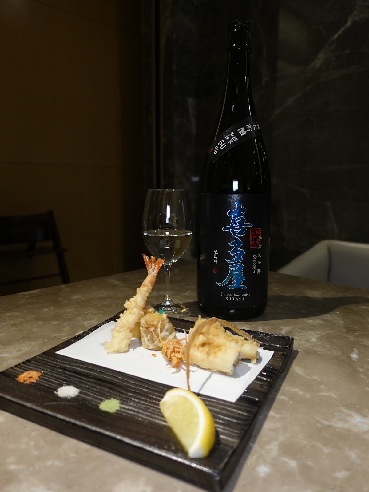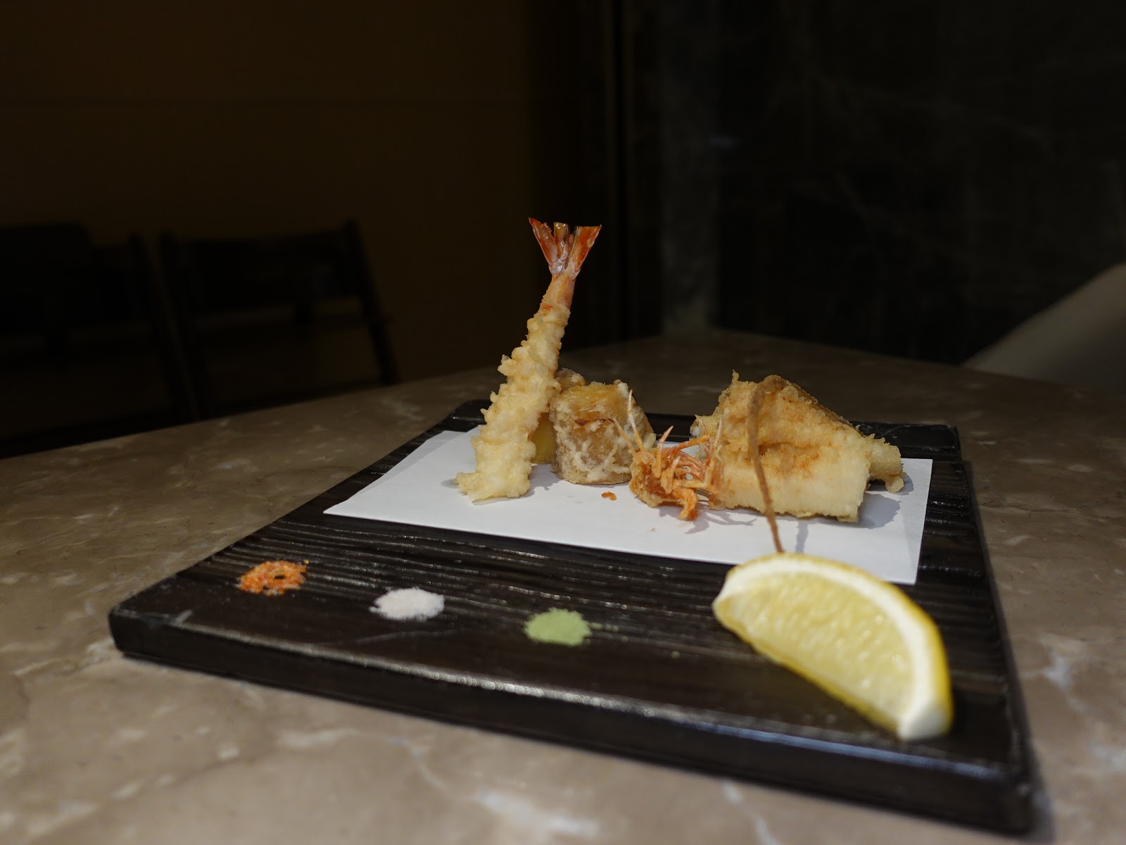 雖說天婦羅好像不是這次晚餐的重點,可是原來大松日的天婦羅是有專責師傅烹調,製作過程一絲不苟,貫徹日本人的仔細,三款天婦羅包括沖繩縣活海蝦、愛知縣活海鰻和冬日季節蔬菜,入口能吃出薄而鬆化的脆漿,油而不膩。建議可搭配碟上抹茶鹽、海藻鹽和海鹽提升味道。