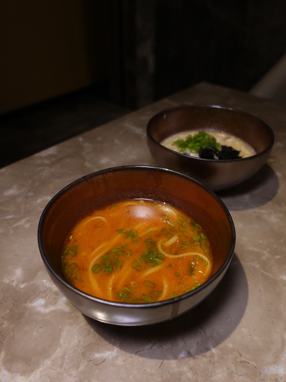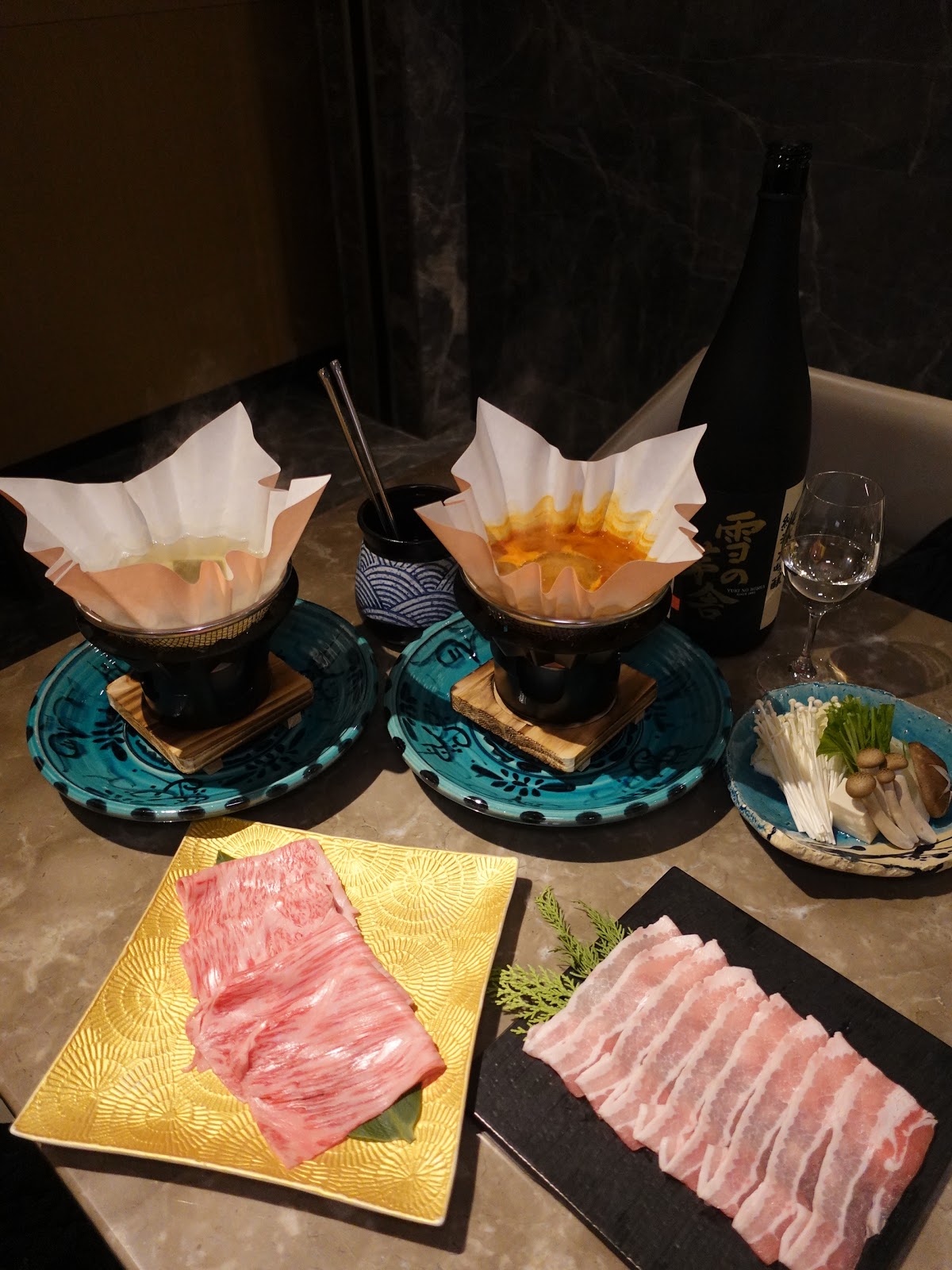 鍋物方面選了日本白金豬肉配辣味噌湯、宮崎縣A5和牛西冷配昆布湯。前者的辣味噌湯是錦上添花,吃起來更暖身; 後者的和牛西冷光看已是一件藝術品,入口更是香氣四溢,熱騰騰的是分外的暖身。