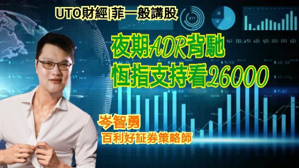 UTO財經|菲一般講股 | 岑智勇:夜期ADR背馳 恆指支持看26000
