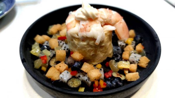 先吃前菜水果薯仔大蝦沙律,大蝦好新鮮,賣相完全是酒店級水準。
