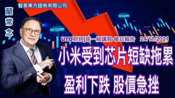 UTO財經|菲一般講股 | 藺常念:小米受到芯片短缺拖累,盈利下跌,股價急挫。每日報告(24/11/2021)