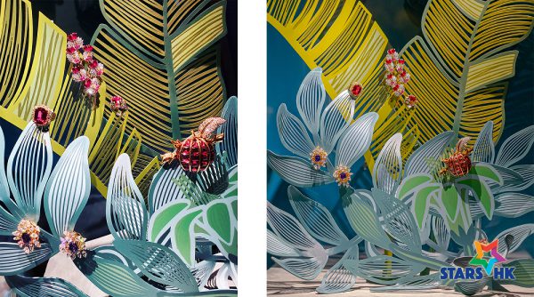 兩枚以黃金和鉑金鑲嵌鮮艷色彩寶石:粉紅色藍寶石、錳鋁榴石、紅寶石及鑽石等的胸針,以彩寶細膩刻劃植物花朵靈動精妙之姿,將蘭花及果實的自然生命力注入珠寶設計中。而拱型葡萄藤造型手鐲及葡萄藤造型手鏈鑲嵌華麗的藍寶石和祖母綠,層疊有致的設計展現動感與獨特線條,將大自然的千姿百態化為珠寶藝術,賦予珠寶的無限生命,令人目不暇給。系列中的兩枚戒指設計靈動細緻,以黃金鑲嵌藍寶石、祖母綠和鑽石塑造出豐富層次,營造出奇幻的奢華感。