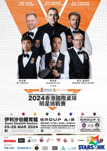 「2024香港國際桌球明星挑戰賽」將會在2024年3月25至26日在伊利沙伯體育館舉行,參賽球手為東道主球手傅家俊、「火箭」奧蘇利雲(Ronnie O’Sullivan)、卓林普(Judd Trump)、利素禾斯基(Jack Lisowski)馬克威廉斯(Mark Williams)和斯佳輝。是次活動為無疆界體育學院和中國香港文化體育旅遊協會聯合主辦。