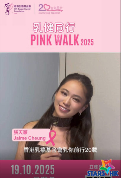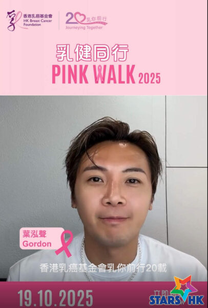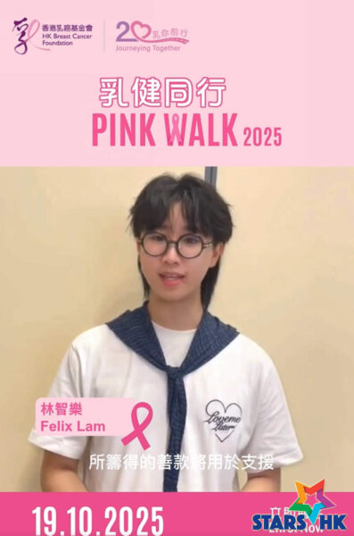 香港乳癌基金會(基金會)年度慈善步行籌款盛事「乳健同行2025」將於2025年10月19日(星期日)早上8時30分至下午1時正,在港島山頂舉行。活動所籌得的善款將用作支持基金會服務,包括推廣乳健教育、為乳癌患者及家人提供支援,以及乳癌研究及倡議等工作。今年適逢基金會成立20周年,活動以「乳你前行20載」為主題。基金會繼日前公布朱千雪擔任「基金會 20 周年大使」外;基金會再欣然宣布 ,得到多位歌手將身體力行現身「乳健同行2025」慈善步行,包括:江若琳、馬天佑、林智樂、葉泓聲與太太陳樂榣;女子組合Beanies成員張天穎(Jaime)、陳樂頤(阿左)及李凱翹(Kay)。