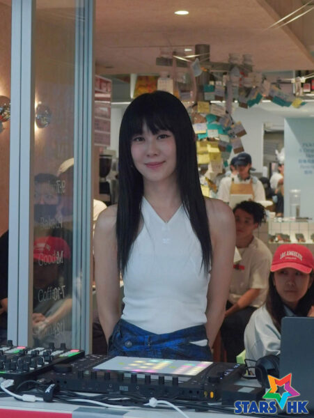 這是白安首次以DJ播歌的形式與大家見面,在人來人往的都是商圈裡,她的演出舞台與觀眾區隔著一條馬路小巷,觀眾則在公園中或坐或站,也有不少人隨著節奏起舞,讓中山街頭瞬間化身最chill的臨時舞台,與百位觀眾一起進入異想的星期八中。這是白安第一次在路邊擔任DJ,隔著一條馬路與觀眾互動,讓她覺得既新鮮又有趣,她笑說:「這種感覺很特別,很開心、很chill!」看到觀眾不畏旁人眼光自在起舞,她也開心表示:「看到有人在跳舞、在星期八裡自由地享受音樂,看起來超開心!讓我的心情也跟著開心起來呢。」