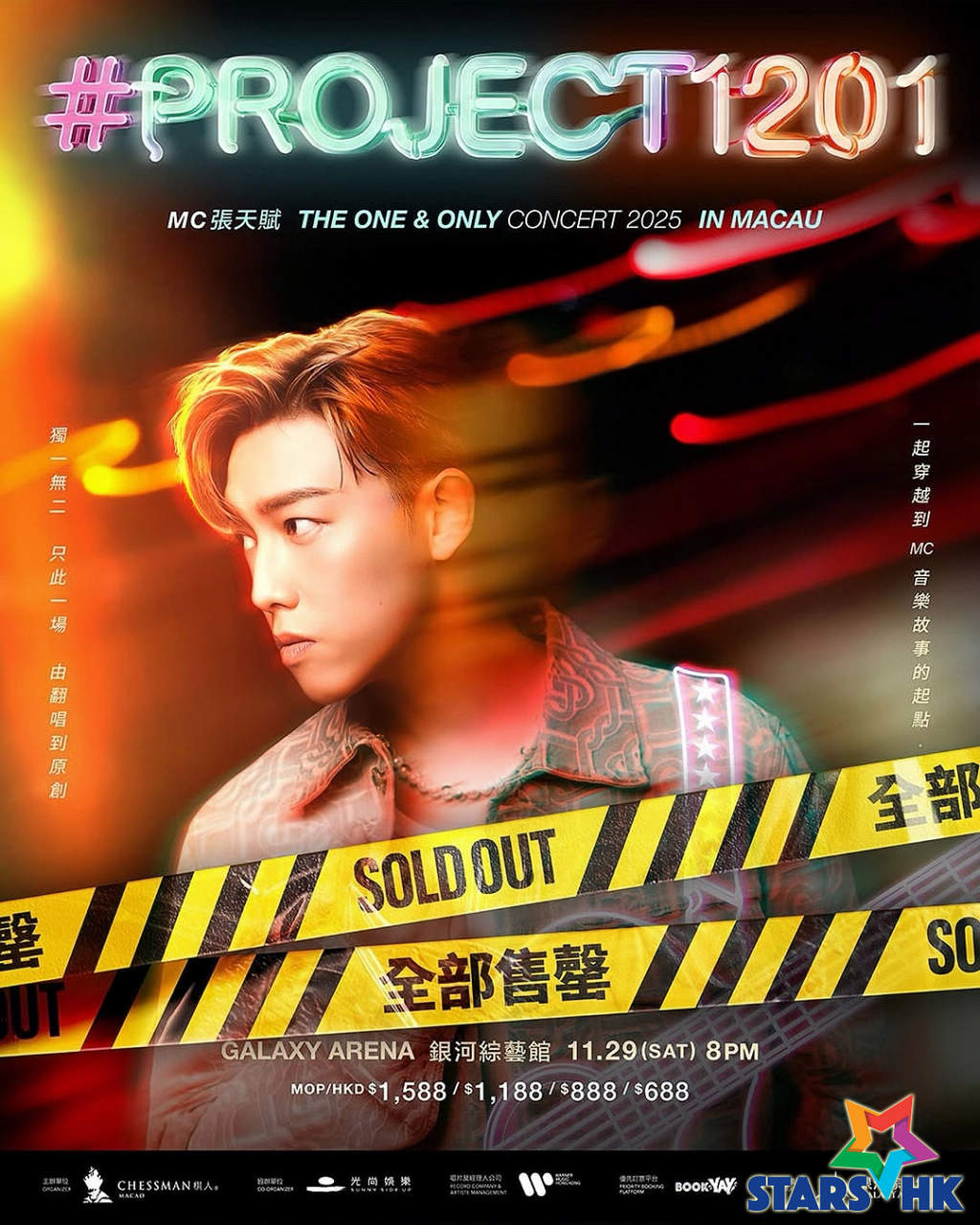 張天賦(MC)將於2025年11月29日(星期六),於澳門銀河綜藝館,舉行由棋人娛樂主辦《MC張天賦 #Project 1201 Live in Macau》演唱會。此次演出僅此一場,門票公開發售後反應熱烈,迅即宣告全部售罄,可見MC音樂魅力橫掃港澳!