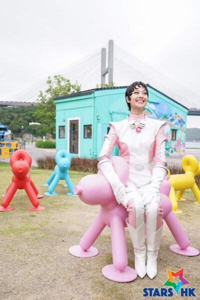 Amy好滿意自己的造型,當中有個按掣著燈的小機關,她笑言這是用來召喚太空船。拍攝期間她在小島上的彩色村屋和壁畫中穿梭,為配合後期加入效果,她對空氣做動作,表情多多好可愛。她說:「多謝服裝團隊,只係用咗三日就趕起,我俾嘅資料係『太空衣』,佢哋再參考『地球防衛少女』同埋根據首歌嘅顏色,變咗今日我呢身造型!呢首歌係關於天馬行空、幻想、充滿FF、超現實,服裝團隊整呢套唔係地球應有嘅服裝,然後我請髮型師和化妝師一齊去諗呢個唔似現代,又唔現實嘅得意造型。」