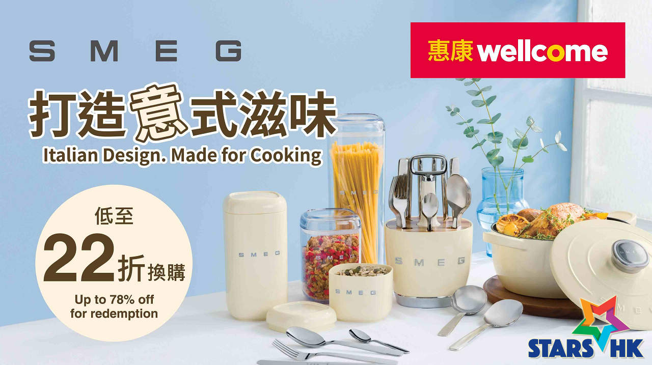 由2025年11月28日至2026年3月12日,惠康及Market Place再次聯乘意大利頂級廚具品牌SMEG,分別推出「打造意式滋味」笑印活動及「美學新『煮意』」印花活動。顧客凡於惠康購物每滿$60即可獲得笑印一個,集齊指定數量的笑印,即可於2026年3月12日或之前憑笑印以低至22折換購一共9款SMEG儲物盒及餐具!此外,於Market Place、3hreesixty或Oliver’s the Delicatessen購物每滿$60亦可獲得印花一個,集齊指定數量的印花,即可以低至19折換購SMEG儲物盒及烘焙系列! yuu會員更可以指定yuu積分免費換領心水產品,記得把握機會趁年末送舊迎新,為廚房升級,讓每一天都充滿意式優雅!