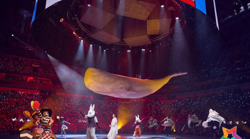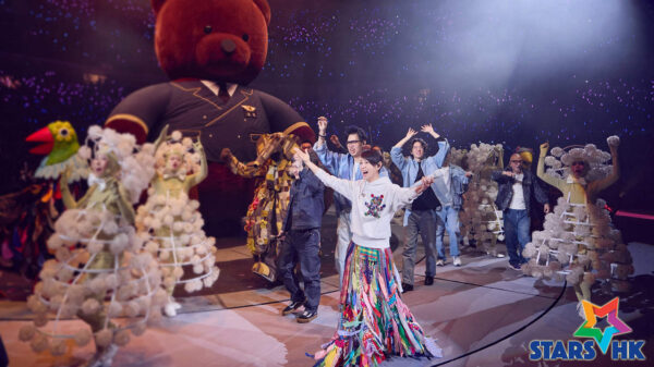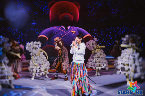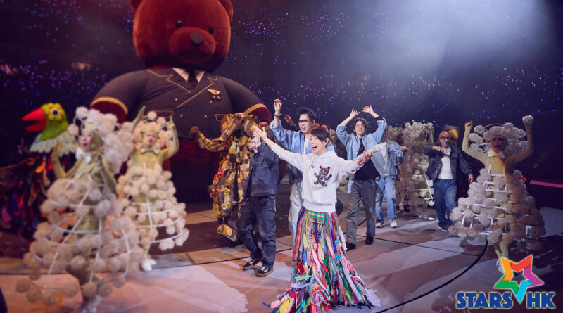 4.舞臺上的飛天鯨魚、旋轉巨熊、音符紙飛機化作紙花,全場飄灑陪伴飛到大家身邊;