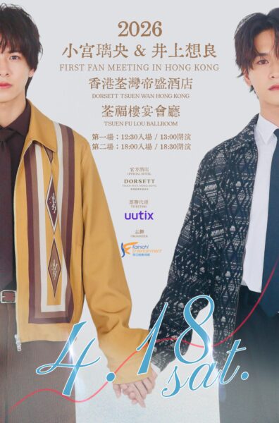 日本新生代人氣演員——「小宮璃央」與「井上想良」,繼電視劇合作後人氣高居不下,話題熱度持續延燒。這次兩人將於 4 月 18 日(星期六)假香港荃灣帝盛酒店荃福樓宴會廳舉辦首場粉絲見面會,與粉絲近距離互動,答謝多年來的支持與守候。