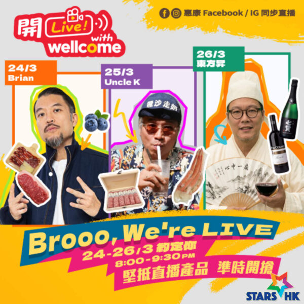 惠康首度開LIVE 3月24至26日一連3日 夥拍廿四味Brian/Uncle K/100毛東方昇 打造全新互動購物體驗!