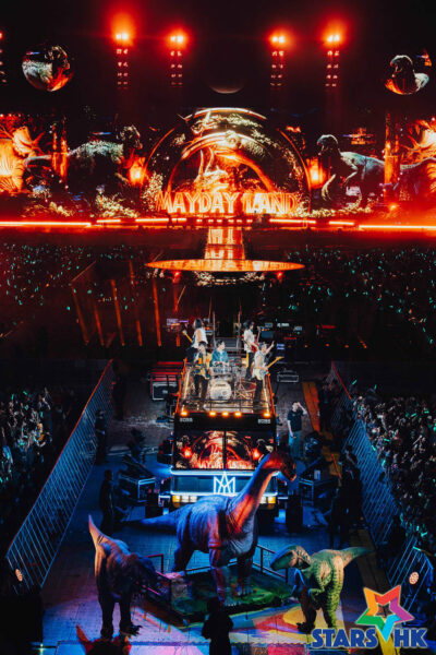 五月天去年帶著5525《回到那一天》25週年巡迴演唱會來到香港,今年第二度來到啟德主場館開唱的他們,在春暖花開的生日週,帶著5525+1主題、獻上全新驚喜,除了24日彩排特別場的搶先曝光的「LOVE節奏遊戲」、25日瑪莎與他的雙胞胎兒女拍攝全新的串場影片,魔法螢光棒再度啟動時光機,這回帶領歌迷親歷一場侏羅紀探險,恐龍蛋孵化成恐龍,栩栩如生地跑出螢幕出現在觀眾面前,歌迷和五月天化身為探險員展開「最好的一天」。