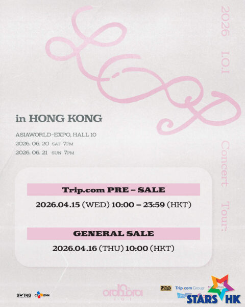 韓國國民限定女團I.O.I即將於2026年6月20-21日假亞洲國際博覽館10號展館 — 舉行2026 I.O.I Concert Tour: LOOP in HONG KONG,這是她們成團十週年後,首次來港開唱。這場演唱會旨在紀念I.O.I出道十週年,並與粉絲們一起回顧過往,創造新的回憶。此次演唱會不僅是她們再次合體的機會,更是和所有熱愛她們的粉絲們重聚的良機。這段時間,成員們在不同的領域各自發光發熱,持續成長。如今,她們不但即將帶著全新的專輯與大家見面,並首次以全新的模樣來港開唱。是次巡迴演出將涵蓋三個站點,分別是首爾、曼谷及香港。作為此次巡演的終站,香港站對於眾多期待已久的粉絲來說,意義深遠。票價分為港幣$1,799、$1,399、$1,099及$899。所有購買$1,799門票的觀眾將可參與演前彩排或歡送活動,並獲得海報一張(其中將隨機派發100張簽名海報)、香港場專屬小卡一套、專屬頸繩及通行證。所有購買$1,399、$1,099和$899門票的觀眾也將獲得隨機三張香港場專屬小卡。Trip.com優先購票率先在2026年4月15日上午10時至晚上11時59分於Trip.com進行。公開售票將於2026年4月16日上午10時透過購票通(Cityline) 及大麥正式發售。