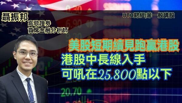 UTO財經|聶Sir市評 | 聶振邦:美股短期續見跑贏港股 港股中長線入手可吼在25,800點以下